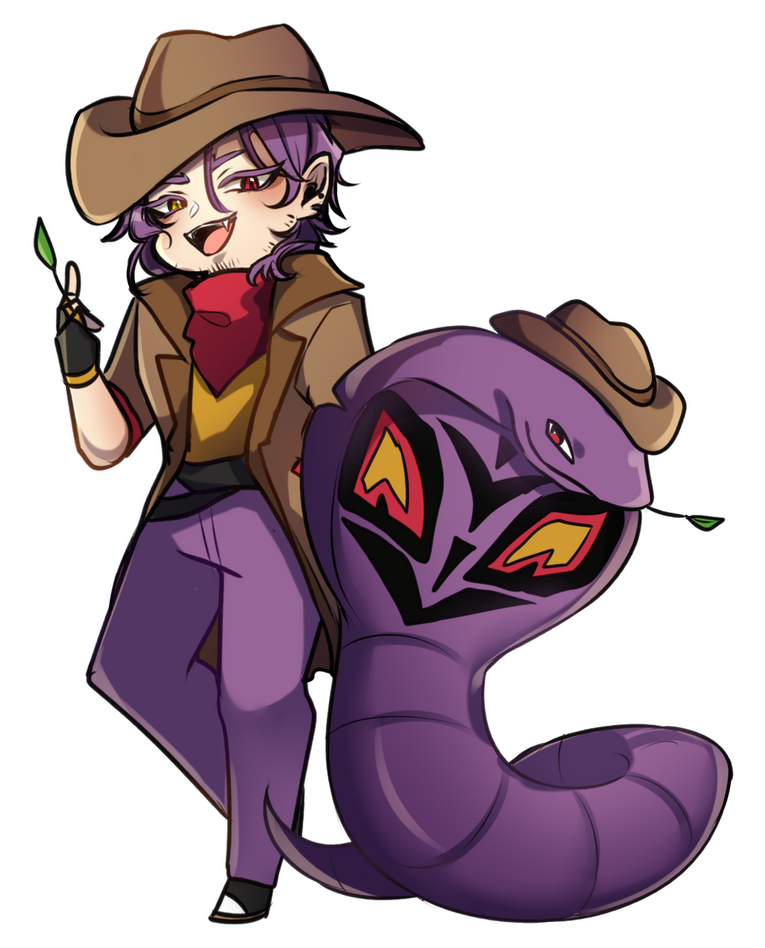 Born and raised in a small desert town on the west of the Fire Continent, Kobra had no interest of travelling the world. As a Snakelet Chupacobra lived on his family farm where he worked his life away everyday to keep their family afloat. Changing into a gijinka was a hard thing for him and his family and ultimately he decided to leave to find a cure himself and ended up within the company of the guild.Kobra is the farmer of Solace Town and has quite a strong affinity to soil. His typing never bothered him as his skills were above that. With his strength and capabilities, he both tends to the farmlands and make sure that no leakage of dungeon Pokémon arrives with his trusty assistant, a quilava (non-diseased) named Mulch