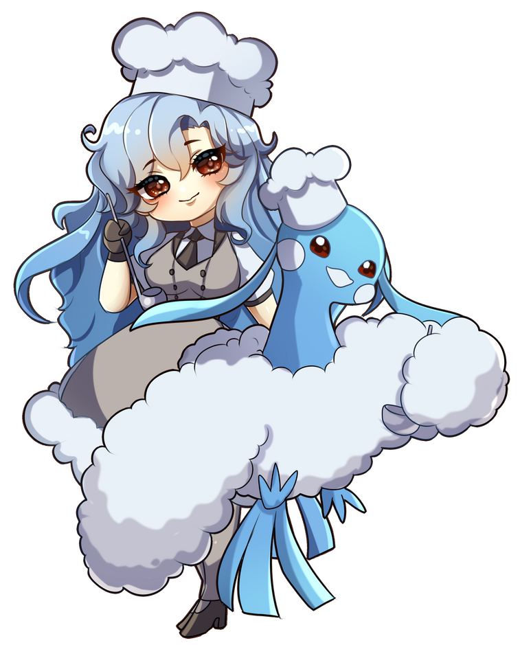 A Whimsicott that once roamed the world, allowing the wind to carry her through now working as the waitress within Solace Town's local restaurant. Fuwa was not one to carry a lot of regrets or dreams with her, just letting herself be carried by the wind and causing mischief where ever she went at her youth- that was until she was saved by her partner, an explorer Altaria after getting stuck within the branches of a Trevenant.She vows to follow her and her dreams, finding themselves a new home within Solace Town together.